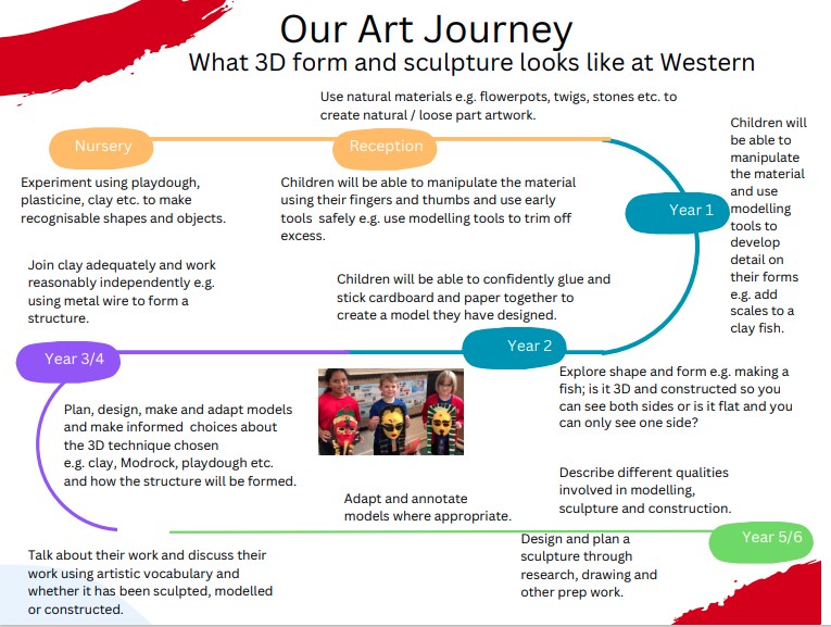 Our intention is for the children to leave Year 6 with a lifelong love of art. Children from EY to Year 6 are encouraged to develop an appreciation of art in all its varied forms which will enhance their future lives.